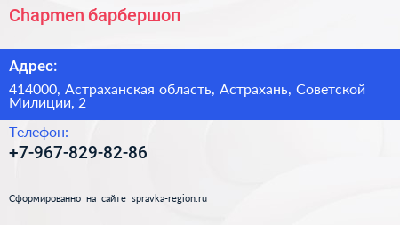 Chapmen, барбершоп по адресу 414000, Астраханская область, Астрахань, Советской Милиции, 2 в дальнейшем Организация, размещена в следующих категориях: