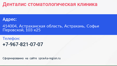 Денталис, стоматологическая клиника по адресу 414004, Астраханская область, Астрахань, Софьи Перовской, 103 к25 в дальнейшем Организация, размещена в следующих категориях: