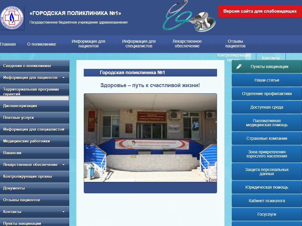 Городская поликлиника №1 по адресу 414024, Астраханская область, Астрахань, Богдана Хмельницкого, 55 в дальнейшем Организация, размещена в следующих категориях: