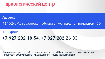 Наркологический центр по адресу 414024, Астраханская область, Астрахань, Бежецкая, 35 в дальнейшем Организация, размещена в следующих категориях: