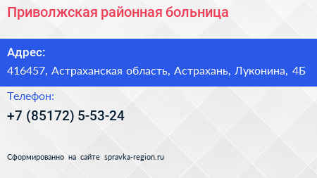 Приволжская районная больница по адресу 416457, Астраханская область, Астрахань, Луконина, 4Б в дальнейшем Организация, размещена в следующих категориях: