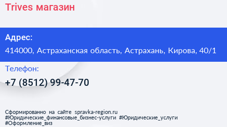Trives, магазин по адресу 414000, Астраханская область, Астрахань, Кирова, 40/1 в дальнейшем Организация, размещена в следующих категориях: