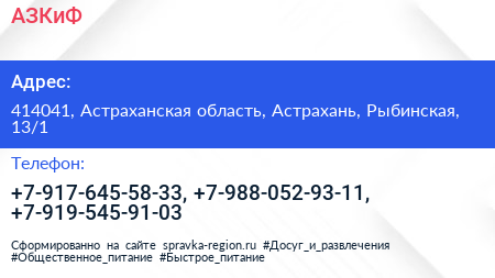 АЗКиФ по адресу 414041, Астраханская область, Астрахань, Рыбинская, 13/1 в дальнейшем Организация, размещена в следующих категориях: