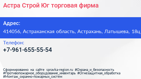 Астра Строй Юг, торговая фирма по адресу 414056, Астраханская область, Астрахань, Латышева, 18ц в дальнейшем Организация, размещена в следующих категориях: