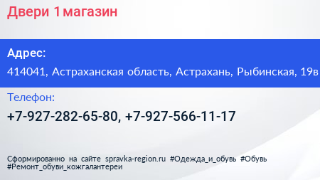Двери №1, магазин по адресу 414041, Астраханская область, Астрахань, Рыбинская, 19в в дальнейшем Организация, размещена в следующих категориях: