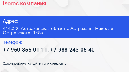 Isoroc, компания по адресу 414022, Астраханская область, Астрахань, Николая Островского, 148а в дальнейшем Организация, размещена в следующих категориях: