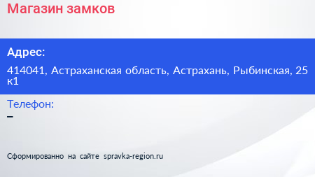 Магазин замков по адресу 414041, Астраханская область, Астрахань, Рыбинская, 25 к1 в дальнейшем Организация, размещена в следующих категориях: