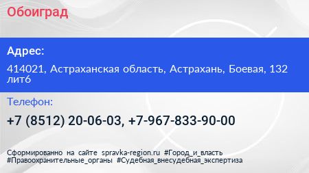 Обоиград по адресу 414021, Астраханская область, Астрахань, Боевая, 132 лит6 в дальнейшем Организация, размещена в следующих категориях: