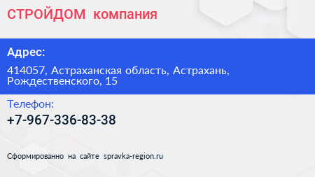 СТРОЙДОМ+, компания по адресу 414057, Астраханская область, Астрахань, Рождественского, 15 в дальнейшем Организация, размещена в следующих категориях: