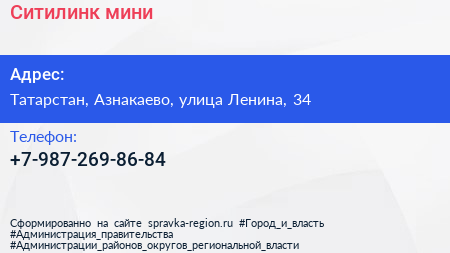 Ситилинк мини по адресу Татарстан, Азнакаево, улица Ленина, 34 в дальнейшем Организация, размещена в следующих категориях: