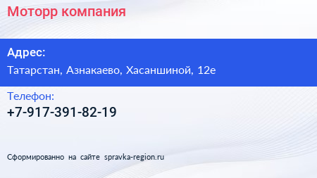 Моторр, компания по адресу Татарстан, Азнакаево, Хасаншиной, 12е в дальнейшем Организация, размещена в следующих категориях: