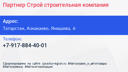Партнер-Строй, строительная компания по адресу Татарстан, Азнакаево, Ямашева, 6 в дальнейшем Организация, размещена в следующих категориях: