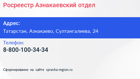 Росреестр, Азнакаевский отдел по адресу Татарстан, Азнакаево, Султангалиева, 24 в дальнейшем Организация, размещена в следующих категориях: