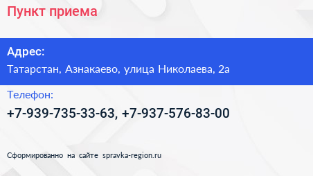 Пункт приема по адресу Татарстан, Азнакаево, улица Николаева, 2а в дальнейшем Организация, размещена в следующих категориях: