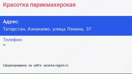 Красотка, парикмахерская по адресу Татарстан, Азнакаево, улица Ленина, 37 в дальнейшем Организация, размещена в следующих категориях: