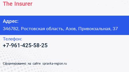 The Insurer по адресу 346782, Ростовская область, Азов, Привокзальная, 37 в дальнейшем Организация, размещена в следующих категориях: