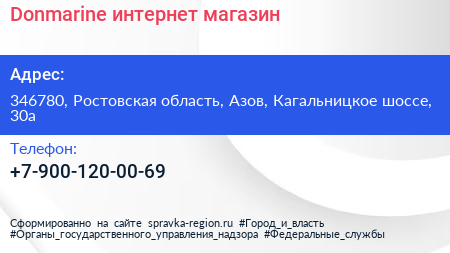 Donmarine, интернет-магазин по адресу 346780, Ростовская область, Азов, Кагальницкое шоссе, 30а в дальнейшем Организация, размещена в следующих категориях: