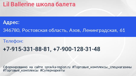 Lil Ballerine, школа балета по адресу 346780, Ростовская область, Азов, Ленинградская, 61 в дальнейшем Организация, размещена в следующих категориях: