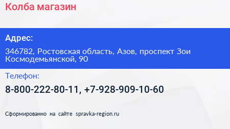 Колба, магазин по адресу 346782, Ростовская область, Азов, проспект Зои Космодемьянской, 90 в дальнейшем Организация, размещена в следующих категориях:
