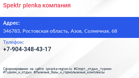 Spektr-plenka, компания по адресу 346783, Ростовская область, Азов, Солнечная, 68 в дальнейшем Организация, размещена в следующих категориях: