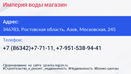 Империя воды, магазин по адресу 346783, Ростовская область, Азов, Московская, 245 в дальнейшем Организация, размещена в следующих категориях: