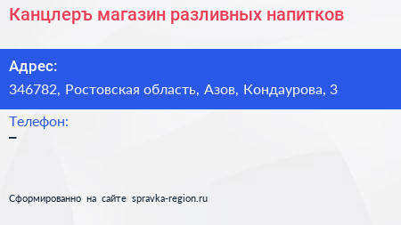 Канцлеръ, магазин разливных напитков по адресу 346782, Ростовская область, Азов, Кондаурова, 3 в дальнейшем Организация, размещена в следующих категориях: