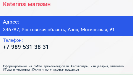 Katerinsi, магазин по адресу 346787, Ростовская область, Азов, Московская, 91 в дальнейшем Организация, размещена в следующих категориях: