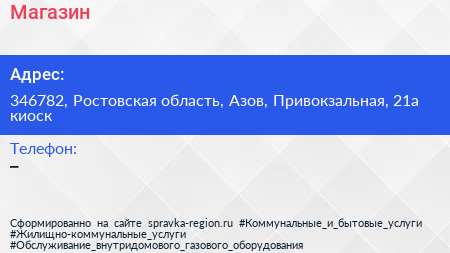 Магазин по адресу 346782, Ростовская область, Азов, Привокзальная, 21а киоск в дальнейшем Организация, размещена в следующих категориях: