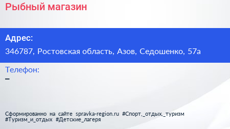 Рыбный магазин по адресу 346787, Ростовская область, Азов, Седошенко, 57а в дальнейшем Организация, размещена в следующих категориях: