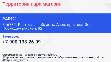 Территория пара, магазин по адресу 346782, Ростовская область, Азов, проспект Зои Космодемьянской, 82 в дальнейшем Организация, размещена в следующих категориях: