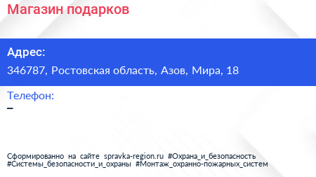 Магазин подарков по адресу 346787, Ростовская область, Азов, Мира, 18 в дальнейшем Организация, размещена в следующих категориях: