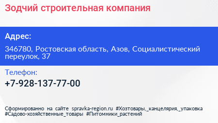 Зодчий, строительная компания по адресу 346780, Ростовская область, Азов, Социалистический переулок, 37 в дальнейшем Организация, размещена в следующих категориях: