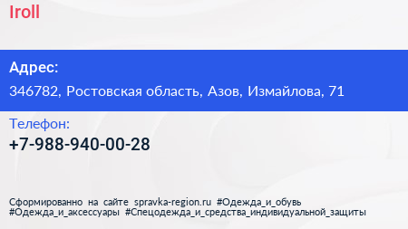 Iroll по адресу 346782, Ростовская область, Азов, Измайлова, 71 в дальнейшем Организация, размещена в следующих категориях: