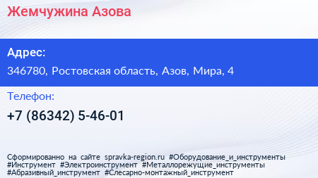 Жемчужина Азова по адресу 346780, Ростовская область, Азов, Мира, 4 в дальнейшем Организация, размещена в следующих категориях: