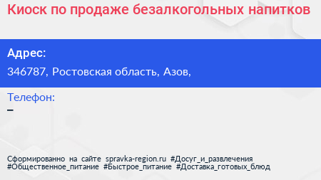 Киоск по продаже безалкогольных напитков по адресу 346787, Ростовская область, Азов, в дальнейшем Организация, размещена в следующих категориях: