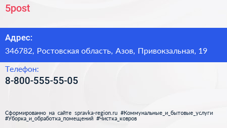 5post по адресу 346782, Ростовская область, Азов, Привокзальная, 19 в дальнейшем Организация, размещена в следующих категориях: