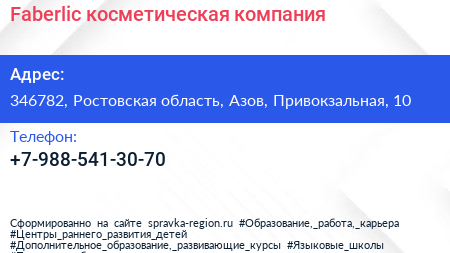 Faberlic, косметическая компания по адресу 346782, Ростовская область, Азов, Привокзальная, 10 в дальнейшем Организация, размещена в следующих категориях: