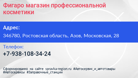 Фигаро, магазин профессиональной косметики по адресу 346780, Ростовская область, Азов, Московская, 28 в дальнейшем Организация, размещена в следующих категориях: