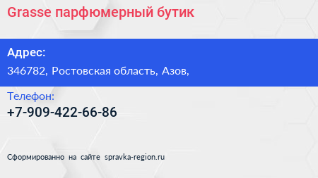 Grasse, парфюмерный бутик по адресу 346782, Ростовская область, Азов, в дальнейшем Организация, размещена в следующих категориях:
