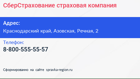 СберСтрахование, страховая компания по адресу Краснодарский край, Азовская, Речная, 2 в дальнейшем Организация, размещена в следующих категориях: