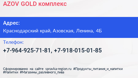 AZOV-GOLD, комплекс по адресу Краснодарский край, Азовская, Ленина, 4Б в дальнейшем Организация, размещена в следующих категориях: