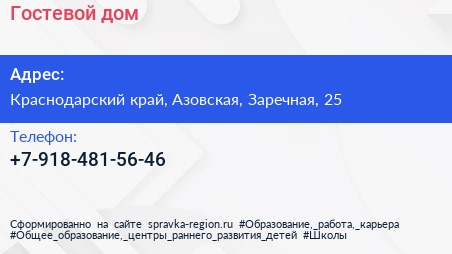 Гостевой дом по адресу Краснодарский край, Азовская, Заречная, 25 в дальнейшем Организация, размещена в следующих категориях: