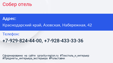 Собер, отель по адресу Краснодарский край, Азовская, Набережная, 42 в дальнейшем Организация, размещена в следующих категориях: