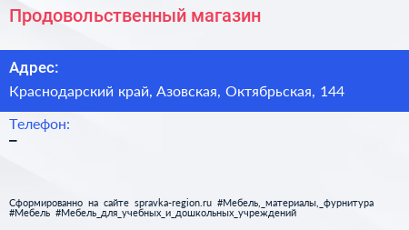 Продовольственный магазин по адресу Краснодарский край, Азовская, Октябрьская, 144 в дальнейшем Организация, размещена в следующих категориях: