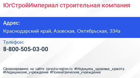 ЮгСтройИмпериал, строительная компания по адресу Краснодарский край, Азовская, Октябрьская, 334а в дальнейшем Организация, размещена в следующих категориях:
