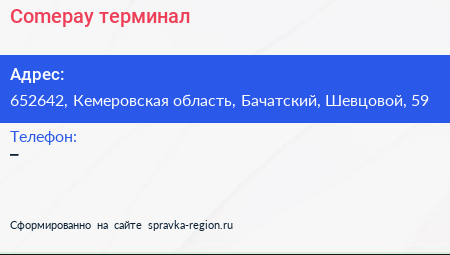 Адрес: Кемеровская область, Бачатский, Шевцовой, 56