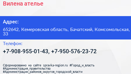 Вилена, ателье по адресу 652642, Кемеровская область, Бачатский, Комсомольская, 33 в дальнейшем Организация, размещена в следующих категориях: