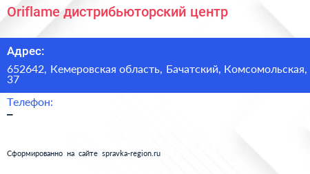 Oriflame, дистрибьюторский центр по адресу 652642, Кемеровская область, Бачатский, Комсомольская, 37 в дальнейшем Организация, размещена в следующих категориях: