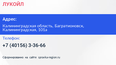ЛУКОЙЛ по адресу Калининградская область, Багратионовск, Калининградская, 101а в дальнейшем Организация, размещена в следующих категориях: