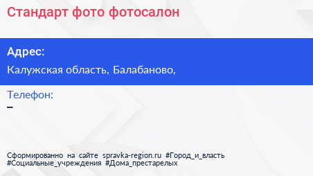 Стандарт фото, фотосалон по адресу Калужская область, Балабаново, в дальнейшем Организация, размещена в следующих категориях: